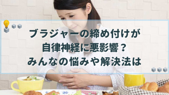生活関連 ブラジャーの締め付けが自律神経に悪影響?みんなの悩みや解決法は ブラジャーの締め付けでみぞおちが苦しい・胃痛がするなどのお悩みが知恵袋にも多く寄せられ、自律神経にも影響すると言われます。きついブラが体調不良を引き起こす理由を探り、ブラジャーの選び方をはじめ対処法を確認しましょう。 生活関連