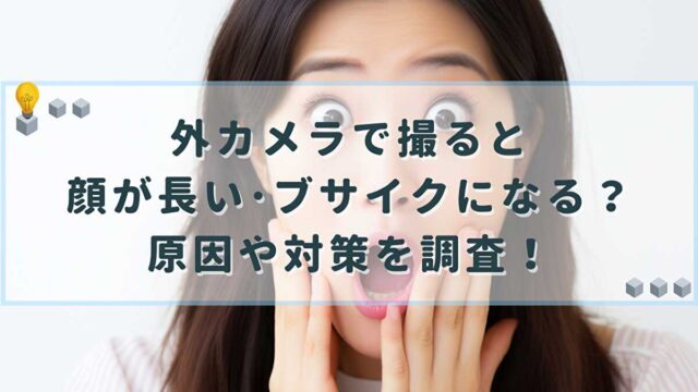 生活関連 外カメラで撮ると顔が長い・ブサイクになる?原因や対策を調査! スマートフォンの外カメラの写真が、顔が長いように見えたり、でかいように見えたりするのは、レンズの影響です。撮り方によっても歪みやバランスがおかしいブサイクな写真が撮れてしまいます。そこで本記事では、スマートフォンの外カメラで写真を撮る際に、気をつけるべきポイントと対策についてまとめました。 生活関連