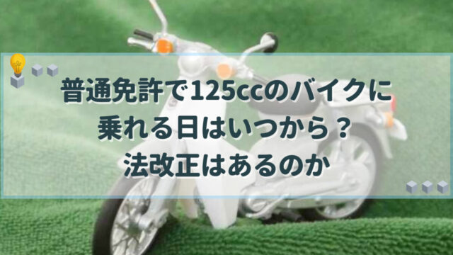 生活関連 普通免許で125ccのバイクに乗れる日はいつから?法改正はあるのか いつから普通免許で125ccバイクに乗れるのかは未定です。ほかにも「普通免許で原付に乗れなくなる」「普通二輪免許の排気量が引き上げられる」といった噂はある法改正が発端です。この記事では噂の背景や普通免許で何ccまで乗れるかも解説しています。 生活関連