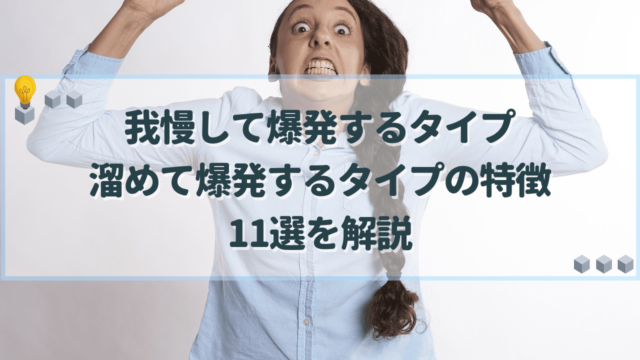 生活関連 我慢して爆発するタイプ・溜めて爆発するタイプの特徴11選を解説 我慢して爆発するタイプには、真面目で気遣い屋で普段はあまり怒らない人が多いです。ストレスを感じやすい人ほど爆発しがちなので、自分の傾向と発散方法を知るといいですね。そこで溜めて爆発するタイプの特徴や診断チェックリスト・対処法を紹介します。 生活関連
