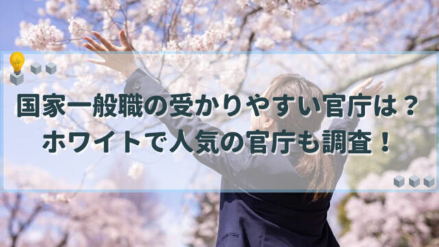 生活関連 国家一般職の受かりやすい官庁は?ホワイトで人気の官庁も調査! 国家一般職で受かりやすい官庁は不人気のところがねらい目です。官庁訪問で人気のところは落ちる可能性もありますが、こだわりがなければ採用漏れは少ないようです。ホワイトで人気の官庁の難易度や倍率についても紹介します。 生活関連