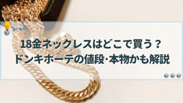 生活関連 18金ネックレスはどこで買う?ドンキホーテの値段・本物かも解説 18金ネックレスをどこで買うか迷ったら、値段だけでなく信頼できるお店なのか見極めて購入しましょう。この記事では18金喜平ネックレスを買うならどこの店がいいかやドンキホーテで販売している商品は本物かについても紹介しています。 生活関連