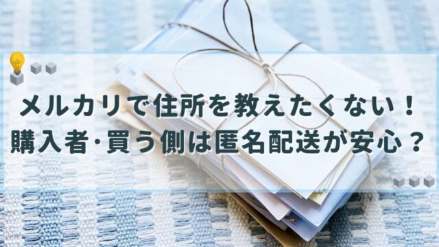 生活関連 メルカリで住所を教えたくない!購入者・買う側は匿名配送が安心? メルカリで購入者が住所を教えたくない場合、買う側から出品者に匿名配送を依頼します。普通郵便は知られたくない場合でも住所がばれるうえ、配送トラブルの補償がないのでメルカリ便での取引がおすすめです。 生活関連