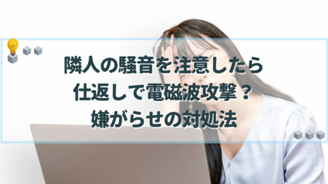 生活関連 隣人の騒音を注意したら仕返しで電磁波攻撃?嫌がらせの対処法 騒音を注意した仕返しに隣人が電磁波攻撃することは考えにくいです。電磁波で人を攻撃できる可能性はほぼなく、証拠も集まらないでしょう。嫌がらせの有無に関係なく、考えられる不調や不快の原因や対策を紹介します。 生活関連