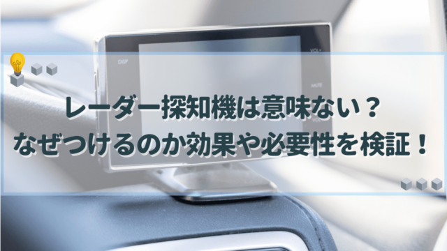 生活関連 レーダー探知機は意味ない?なぜつけるのか効果や必要性を検証! レーダー探知機を車につけても100%取締りを逃れられるわけではないので、捕まった人や意味ないと感じる人もいます。しかしネズミ捕りを探知できたり運転に役立つ情報が表示されたりとメリットは多いので、意味はあるのかや必要性について解説します。 生活関連
