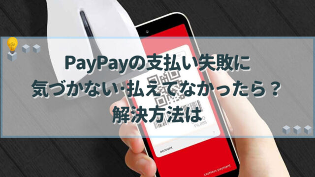 生活関連 PayPayの支払い失敗に気づかない・払えてなかったら?解決方法は PayPayの支払い失敗に気づかないとあとで請求される可能性があるので注意しましょう。この記事では払えてなかったときの解決法や払ったふりをするとどうなるかのほか、履歴の調べ方も解説!「残高あるのに使えないのはなぜ」という疑問も解決します。 生活関連