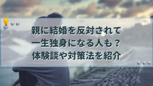 生活関連 親に結婚を反対されて一生独身になる人も?体験談や対策法を紹介 親に結婚を反対されると諦める選択をして一生独身の人もいれば、押し切る人もいます。結婚してもしなくても親と絶縁する・幸せになっている・いないなど人それぞれです。親の反対する理由を見極め対処する方法を紹介します。 生活関連