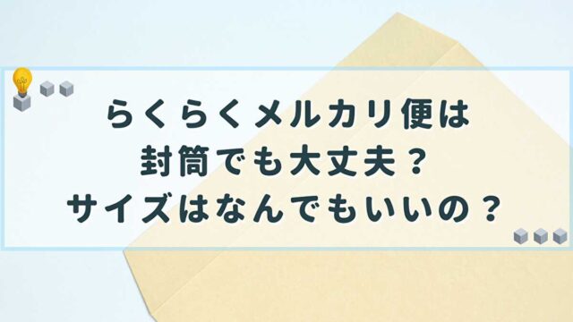 生活関連 らくらくメルカリ便は封筒でも大丈夫?サイズはなんでもいいの? らくらくメルカリ便のネコポス・宅急便は、封筒で商品を送れますが、宅急便コンパクトは専用箱が必要です。サイズ範囲も細かく決められているので、郵送する際はサイズチェックを忘れないようにしましょう。本記事では、メルカリで商品を郵送する際に役立つ内容について紹介します。 生活関連