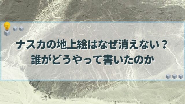 生活関連 【ナスカの地上絵はなぜ消えない?】誰がどうやって書いたのか ナスカの地上絵がなぜ消えないのか、どうやって誰が書いたのか、どんな目的なのかなど、現在でも完全に解き明かされていない謎や仮説、多くの人の保護活動や研究によりわかったことなどを詳しく紹介します。 生活関連