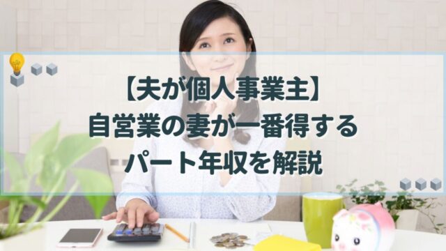 生活関連 【夫が個人事業主】自営業の妻が一番得するパート年収を解説 個人事業主で自営業の妻が一番得するパート年収はいくらまで働けるのか、外で働くのと専従者として夫の仕事を手伝うメリットとデメリット、配偶者控除や税金、社会保険加入の考え方などをわかりやすく紹介します。 生活関連