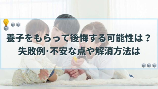 生活関連 養子をもらって後悔する可能性は?失敗例・不安な点や解消方法は 特別養子縁組で養子をもらって後悔した人や「かわいくない」「返したい」という口コミは見つかりません。特別養子縁組が成立しないという失敗例やトラブルはあるようですが、養親になる人は障害児だった場合でも育てる覚悟が問われるといいます。 生活関連