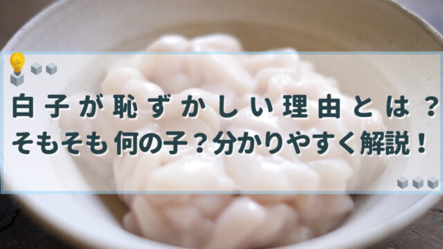 料理・食材 白子が恥ずかしい理由とは?そもそも何の子?分かりやすく解説! 白子の正体は魚介類の精巣のため、中には恥ずかしいと感じる人がいるようです。「気持ち悪い」「まずい」「何の子?」など様々な声がありますが実際にはどうなのか白子の正体について紹介します。 料理・食材