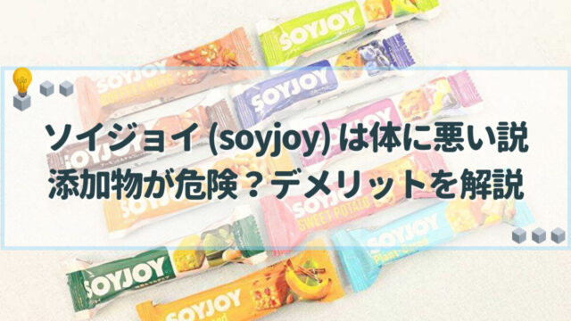 料理・食材 ソイジョイ (soyjoy) は体に悪い説|添加物が危険?デメリットを解説 ソイジョイ(soyjoy)は高タンパクで食物繊維も豊富な栄養価の高い食品で、食べ過ぎなければ体に悪いわけではありません。この記事ではデメリットといわれる添加物やトランス脂肪酸が含まれているのか、またメリットとなる栄養成分などの情報をお届けします。 料理・食材