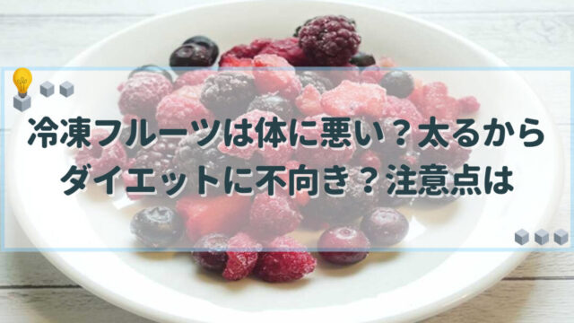 料理・食材 冷凍フルーツは体に悪い?太るからダイエットに不向き?注意点は 冷凍フルーツは体に悪い食べ物ではありませんが、種類によっては糖質を多く含むため食べ過ぎは肥満に繋がるおそれがあります。この記事ではフルーツ特有の糖質についてや、ダイエットに適した冷凍フルーツの食べ方などをご紹介していきます。 料理・食材