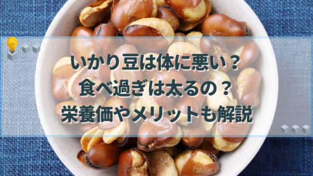 料理・食材 いかり豆は体に悪い?食べ過ぎは太るの?栄養価やメリットも解説 いかり豆は体に悪いものではありませんが、ソラマメを揚げて塩で味付けしたお菓子なので、食べ過ぎると脂質や塩分の取り過ぎに繋がります。安心して美味しく食べられるよう、いかり豆の栄養成分や適量について紹介します。 料理・食材