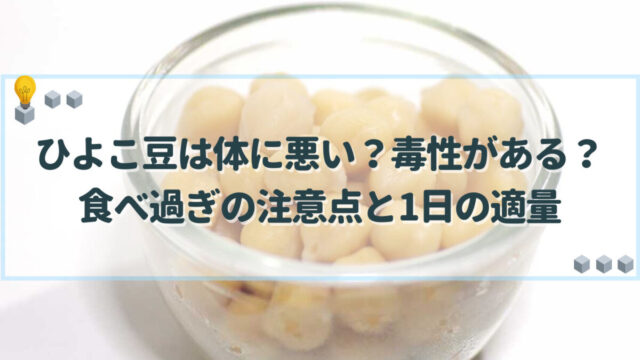 料理・食材 ひよこ豆は体に悪い?毒性がある?食べ過ぎの注意点と1日の適量 ひよこ豆は体に悪いものではありませんが、食べ過ぎると下痢や腹痛などを引き起こす可能性があります。また食べ方によっては「毒性」のある成分にも注意が必要です。対処法や1日のおすすめしたい摂取量を紹介していきます。 料理・食材