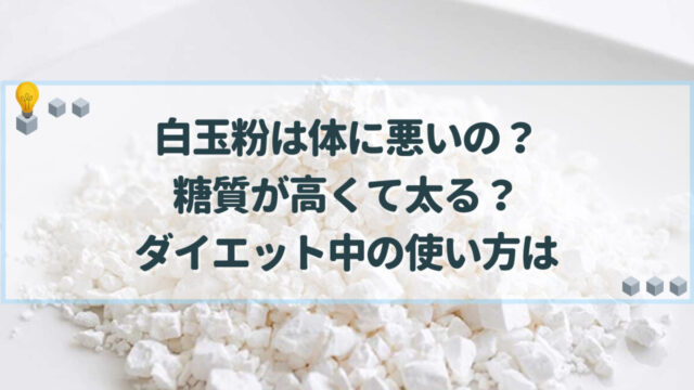 料理・食材 白玉粉は体に悪いの?糖質が高くて太る?ダイエット中の使い方は 白玉粉は糖質が高めなので、団子にして食べ過ぎると太る可能性があり体に悪いとされることがありますが、適量を守れば問題はありません。この記事では、糖質制限・ダイエット中でも食べたい!というときの使い方やレシピ・栄養成分などを紹介しています。 料理・食材