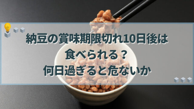 料理・食材 納豆の賞味期限切れ10日後は食べられる?何日過ぎると危ないか 賞味期限切れ後10日経過した納豆は、風味が落ちていることが多く、それだけでなくカビが生えて健康を害する危険性もあるので注意が必要です。この記事では、食べられるのかどうかの見分け方や保存方法を紹介します。 料理・食材