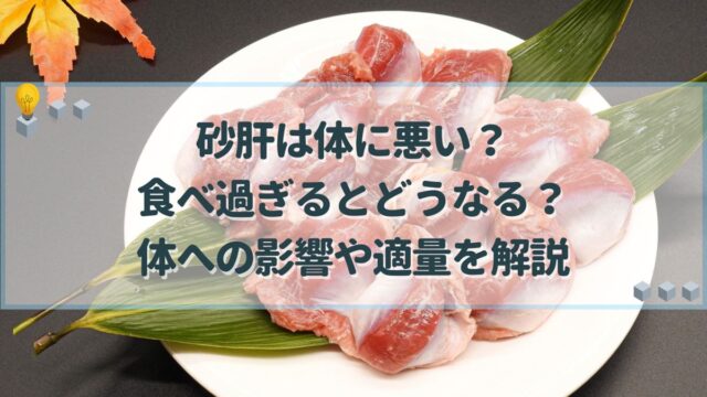 料理・食材 砂肝は体に悪い?食べ過ぎるとどうなる?体への影響や適量を解説 砂肝を食べ過ぎるとコレステロールやプリン体の過剰摂取で体に悪い影響が懸念されます。この記事では砂肝が体に悪いとされる原因や、体への影響が気になる人に知って欲しい適量の考え方、栄養成分の特徴などを紹介します。 料理・食材