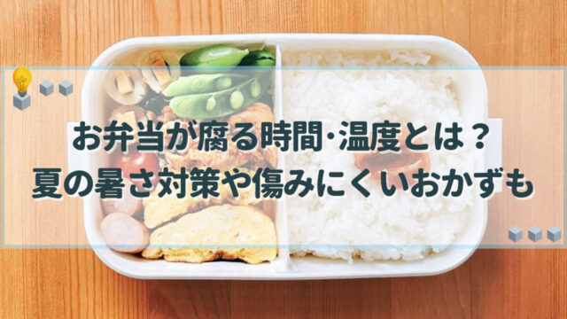 料理・食材 お弁当が腐る時間・温度とは?夏の暑さ対策や傷みにくいおかずも お弁当は温度・時間などの条件がそろうと短時間でも腐るため、特に夏場は注意が必要です。腐りやすい状況や正しい保存方法を知って、しっかりと対策しましょう。この記事では、正しい保存方法や傷みにくいおかずを紹介します。 料理・食材