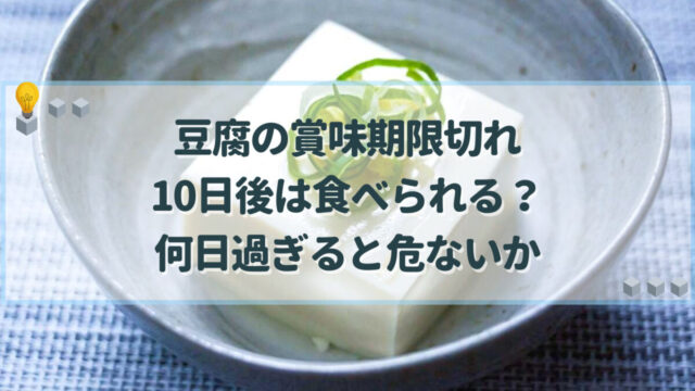 料理・食材 豆腐の賞味期限切れ10日後は食べられる?何日過ぎると危ないか 賞味期限切れ10日後の豆腐は、一部の充填豆腐を除いて安全性に問題がある場合がほとんどです。この記事では豆腐に関ついて、未開封・開封後の日持ち、腐るとどうなるか、日持ちを延ばす保存方法などを紹介します。 料理・食材