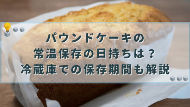 料理・食材 パウンドケーキの常温保存の日持ちは?冷蔵庫での保存期間も解説 パウンドケーキは製品によって異なりますが、市販品の場合は常温保存で1ヶ月以上日持ちします。夏場は気温が高いため、冷蔵庫へいれるのがおすすめなので、正しい保存方法も紹介していきます。 料理・食材