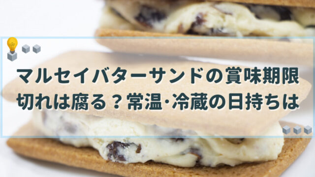 料理・食材 マルセイバターサンドの賞味期限切れは腐る?常温・冷蔵の日持ちは マルセイバターサンドの賞味期限は、常温と冷蔵で9~10日程度です。また冷凍保存も可能ですが、解凍後は早めに食べ切る必要があります。マルセイバターサンドの賞味期限の目安や正しい保存方法を解説します。 料理・食材