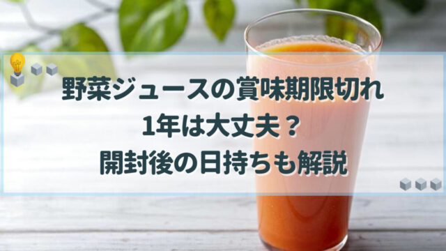 料理・食材 野菜ジュースの賞味期限切れ1年は大丈夫?開封後の日持ちも解説 賞味期限切れの野菜ジュースは、保存状態が良ければまだ飲める可能性があります。しかし開封後は日持ちしません。この記事では1年以上期限が切れても大丈夫なのか、開封後の正しい保存方法や活用方法について紹介しています。 料理・食材