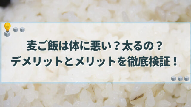 料理・食材 麦ご飯は体に悪い?太るの?デメリットとメリットを徹底検証! 麦ご飯は体に悪い食べ物ではありませんが、食物繊維を豊富に含むため、食べ過ぎるとデメリットを引き起こすことがあります。この記事では麦ご飯が体に悪いと言われる理由や、食物繊維の持つメリットについて解説します。 料理・食材