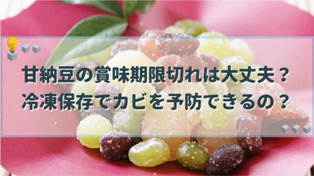 料理・食材 甘納豆の賞味期限切れは大丈夫?冷凍保存でカビを予防できるの? 甘納豆は未開封で保存方法を守っていれば、多少賞味期限切れでも食べられます。カビや異臭などの異変を感じたら食べるのをやめましょう。この記事でhあ、甘納豆を日持ちさせる冷凍保存方法やアレンジレシピなどを紹介します。 料理・食材