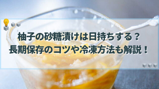 料理・食材 柚子の砂糖漬けは日持ちする?長期保存のコツや冷凍方法も解説! 柚子の砂糖漬けの賞味期限は市販品で約8ヶ月、手作りは完成後冷蔵で約2ヶ月ほど日持ちします。正しい保存方法を守らなければ傷んでしまうこともあります。この記事では長期保存するための保存方法のポイント、期待できるはたらきや使い方などの情報をご紹介します。 料理・食材