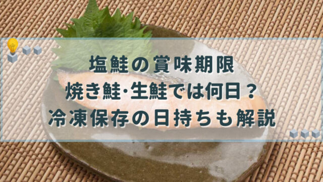 料理・食材 塩鮭の賞味期限|焼き鮭・生鮭では何日?冷凍保存の日持ちも解説 塩鮭は商品によって賞味期限が大きく異なりますが、パックで売られている生の状態のものはあまり日持ちしません。生鮭や焼き鮭との違い、腐るとどうなるのか、冷蔵や冷凍の保存方法などとあわせてご紹介しています。 料理・食材