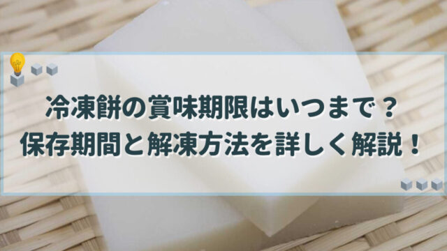 料理・食材 冷凍餅の賞味期限はいつまで?保存期間と解凍方法を詳しく解説! 冷凍餅の賞味期限は6ヶ月程度が目安です。風味が落ちない内に食べ切りたい場合は1ヶ月を目安に消費しましょう。この記事では手作り餅・市販品を冷凍する際の保存期間や解凍方法、カビが生えた餅の対処法について紹介しています。 料理・食材