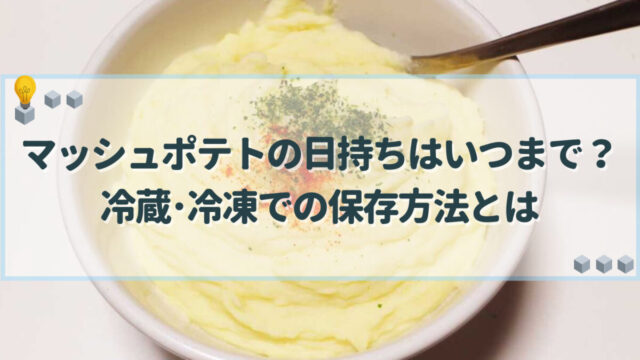 料理・食材 マッシュポテトの日持ちはいつまで?冷蔵・冷凍での保存方法とは マッシュポテトは市販品と比べると手作りはあまり日持ちしません。すぐに消費できないときは冷蔵・冷凍保存をしましょう。この記事では腐敗の原因や正しい保存方法、食感が変わるのを防ぐ解凍方法などを紹介しています。 料理・食材