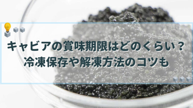 料理・食材 キャビアの賞味期限はどのくらい?冷凍保存や解凍方法のコツも キャビアの賞味期限は商品ごとに異なりますが、一例では未開封の冷蔵保存で14日程、冷凍保存で60日ほどです。この記事では、キャビアの期限切れや傷んでいるかを見極めるポイント、正しい冷凍保存や解凍方法などについてご紹介しています。 料理・食材