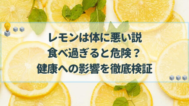 料理・食材 レモンは体に悪い説|食べ過ぎると危険?健康への影響を徹底検証 レモンは食べ過ぎると胃が荒れることで胃痛を起こすため、体に悪いといわれることがあります。この記事では、皮や果汁も使えるレモンの効果的な食べ方や飲み方・適量目安や体に良い栄養成分についての情報をお届けします。 料理・食材
