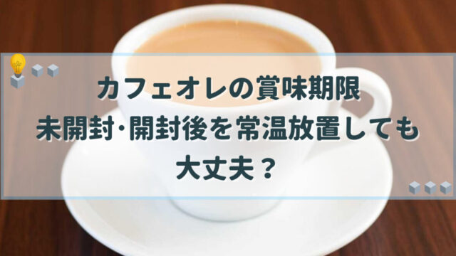 料理・食材 カフェオレの賞味期限|未開封・開封後を常温放置しても大丈夫? カフェオレの賞味期限や保存方法は種類によって異なり、中には常温放置をしたら未開封でも腐る恐れがある商品もあります。この記事では、カフェオレの賞味期限や腐るとどうなるか、正しい保存方法や日持ちの目安、飲み方の注意点を紹介します。 料理・食材