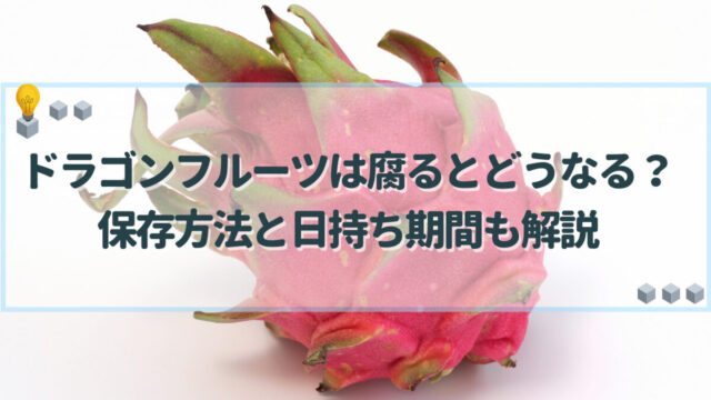 料理・食材 ドラゴンフルーツは腐るとどうなる?保存方法と日持ち期間も解説 ドラゴンフルーツが腐るとどうなるのか、保存期間・保存方法などを紹介します。ドラゴンフルーツが腐るとカビの発生や変色などの異変が起こります。日持ち期間の目安や食べ頃を覚えて、美味しいうちに消費しましょう。 料理・食材