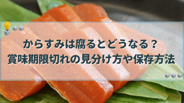 料理・食材 からすみは腐るとどうなる?賞味期限切れの見分け方や保存方法 からすみにふわふわのカビが生えたり嫌な臭いがしたりする場合腐っていると考えられますが、全体に黒くなったり表面が白い場合は食べられる可能性があります。からすみを食べられるか判断できるように、腐るとどうなるかや賞味期限・保存方法を解説します。 料理・食材