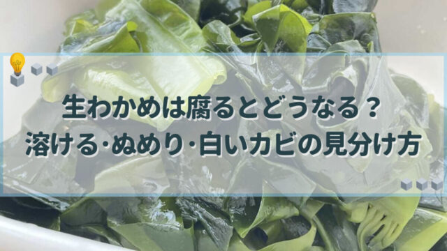 料理・食材 生わかめは腐るとどうなる?溶ける・ぬめり・白いカビの見分け方 生わかめが腐ると生臭くなり変色したり溶けたりして食べると危険な状態になるので、食べられるかの見分け方や正しい保存の仕方を覚えておくことが大切です。傷みを防ぎ色良くする下処理のコツや風味や食感を活かす調理法も活用して、生わかめの美味しさを満喫しましょう。 料理・食材