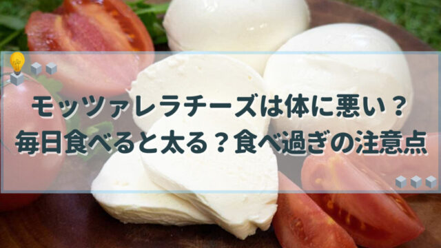 料理・食材 モッツァレラチーズは体に悪い?毎日食べると太る?食べ過ぎの注意点 モッツァレラチーズを食べ過ぎると太るだけではなく、下痢や頭痛の原因になり体に悪い影響があると言われています。栄養価は高いですが塩分を多く含むので、毎日食べる場合は摂取量に気をつけましょう。この記事では、モッツァレラチーズを健康的に食べるために知っておきたい知識を紹介します。 料理・食材