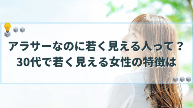 ダイエット アラサーなのに若く見える人って?30代で若く見える女性の特徴は アラサーなのに若く見える人の特徴は、平均して30歳半ばに女性が自覚する顔の老化が表れていないことです。幼く見られることを「若くて30歳に見えない」と思う女性もいます。30代で若く見える人、30歳なのに20代に見える女性の共通点を紹介します。 ダイエット