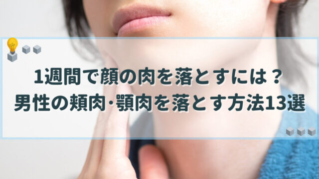 ダイエット 1週間で顔の肉を落とすには?男性の頬肉・顎肉を落とす方法13選 男性が1週間で顔の肉を落とすためには、小顔マッサージや表情筋トレーニングで頬肉と顎肉を減らす必要があります。短期間で痩せるのは難しいので痩せずに小顔に見えるテクニックもご紹介します。 ダイエット