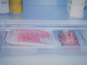 最近の冷蔵庫に付いている特定低温室は、冷蔵室よりも低い温度になっているので、お肉の鮮度をより長く保てるんです。