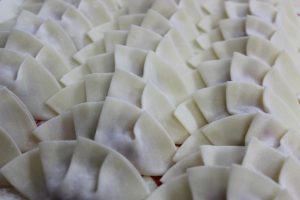 - 薄力粉に熱湯入れてよく練り、「湯だね」にする