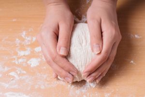 - 台に押し付けるようにして揉んだり、叩きつけるようにしたりして滑らかになるまでこねる
