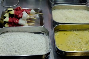 例えば鮭のムニエルやフライドポテトを作る時に表面にまぶしているのも薄力粉だし、トンカツやコロッケ、エビフライなどの揚げ物をする時に小麦粉→卵→パン粉をつけますが、この時に使うのも薄力粉です。