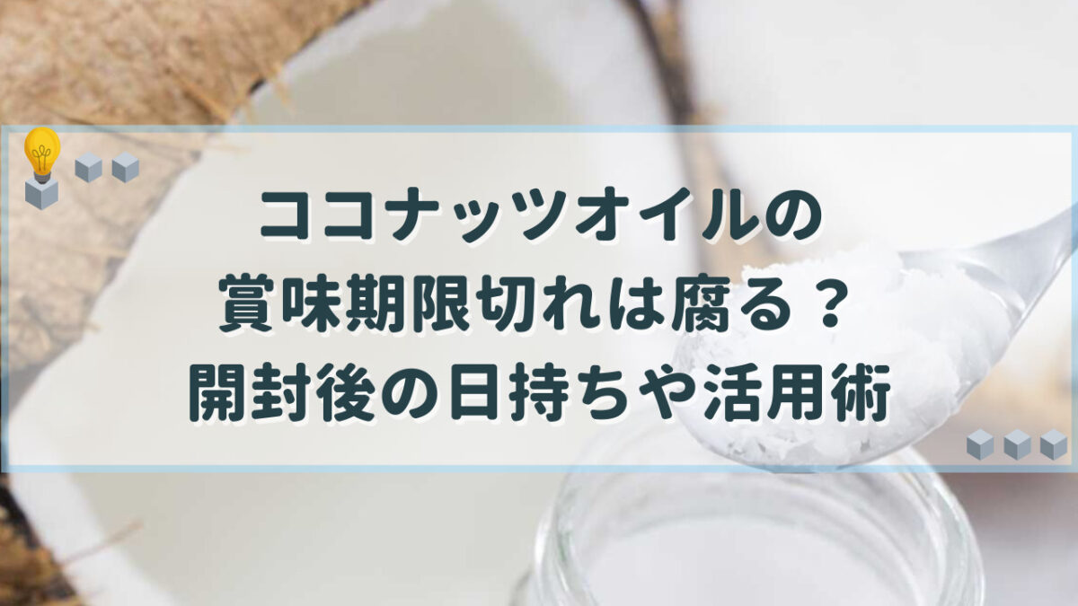 美味しく食べることが出来ると証明された期限に、余裕をもって設定された期限が賞味期限なので、ココナッツオイルは賞味期限切れ後も食べられる可能性があります。(※1)