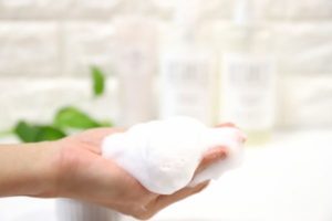 入浴した際に、低刺激性の石鹸を優しく泡だてて洗うようにしましょう。