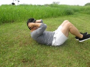 3.この時におへそを見るようにしながら起き上がり、そして元の姿勢に戻る